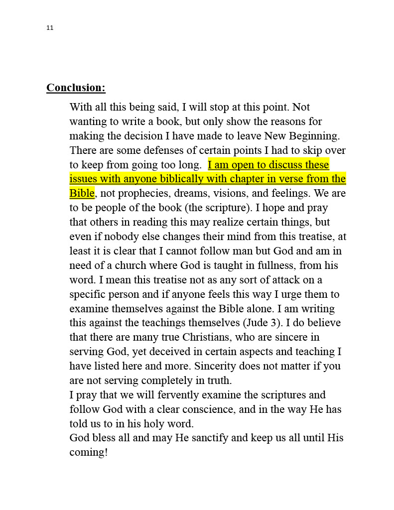 I implore the individuals that are reading these words to demand justice for me and my family, and I implore the leaders reading these words that are and have been aware of these various situations hereby documented, to come forward and condemn these wrongdoings and start anew. Because these occurrences take place within what we claim to be the House of the Lord, the world looks at us and slanders the name of Jesus Christ. It is time for a revival. It is time the church turns to Christ in ABSOLUTE TRUTH. The only way to achieve this is to renounce and repent of the sin we have all been living in, and hold each other accountable moving forward as brothers and sisters in Christ.