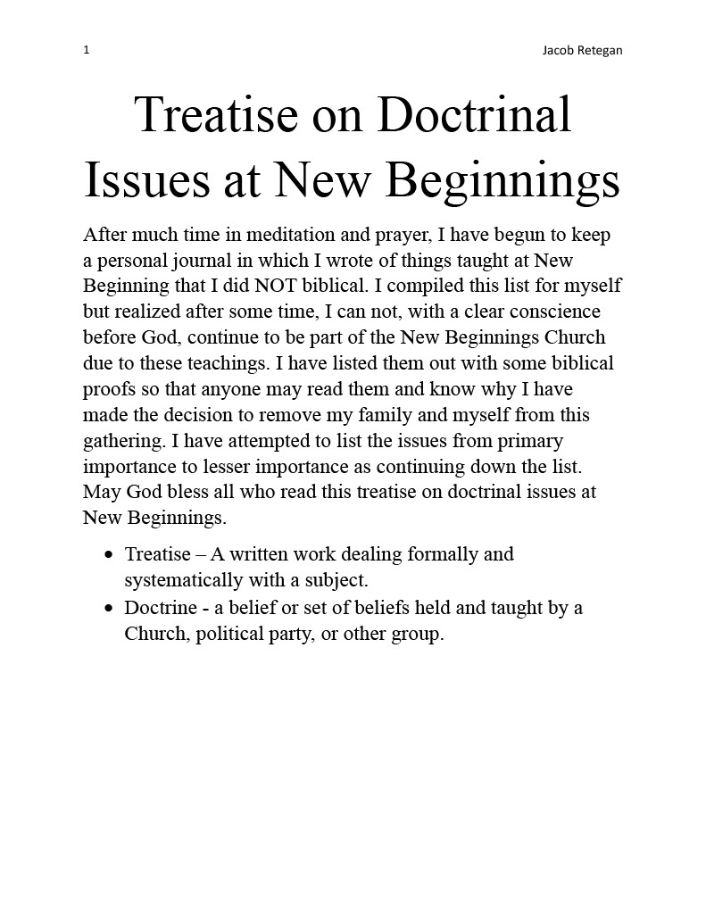 It has become abundantly clear that my husband, Jacob Retegan, did not depart New Beginnings because he became a Calvinist as he claims, but because he was living and continues to live an immoral life, which God had revealed to the pastor of New Beginnings, who had several closed-door conversations with Jacob about what the Lord had told him he was guilty of. It has become abundantly clear that my husband became fearful of being exposed, and therefore left and went to join those who participate in living the same sinful life he currently leads.