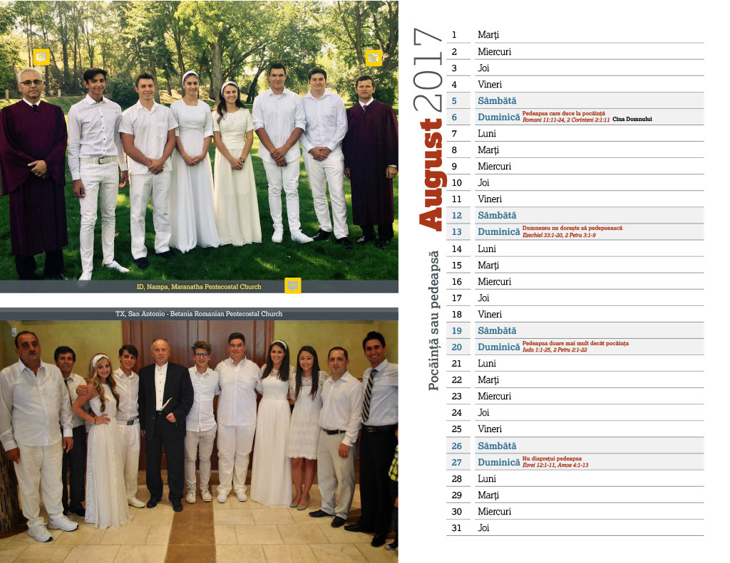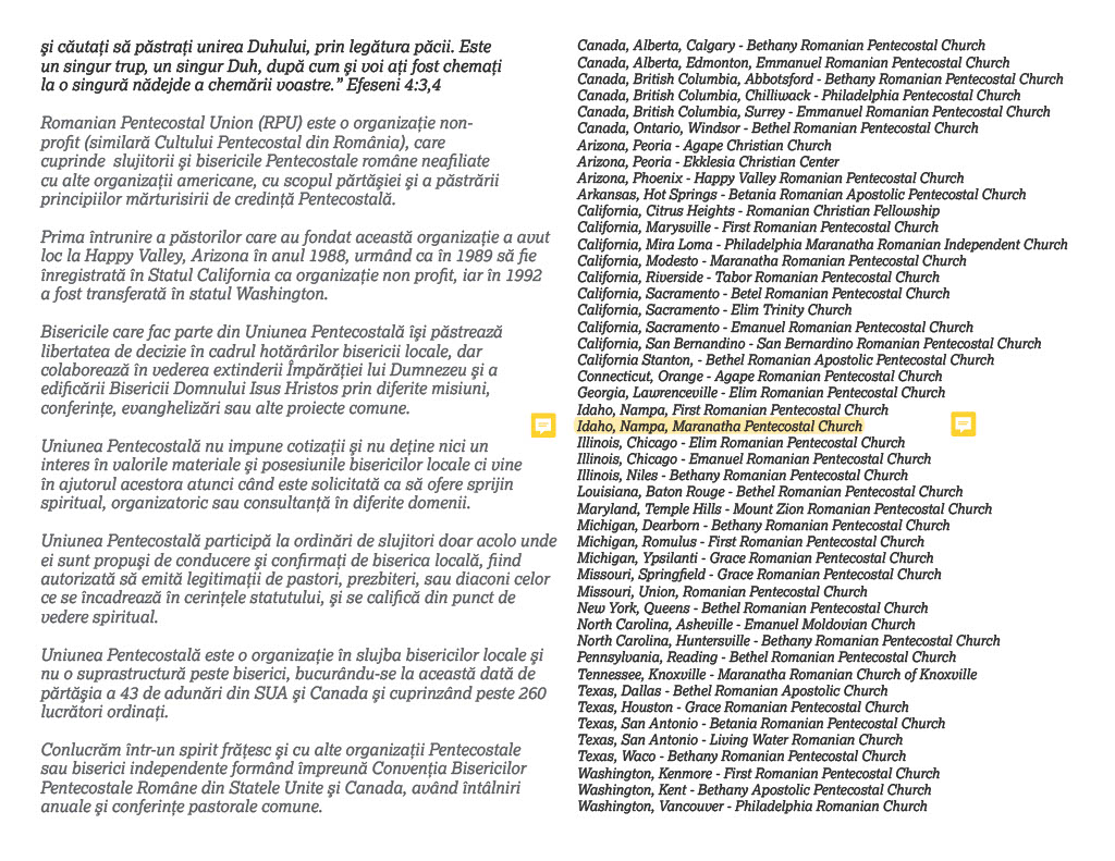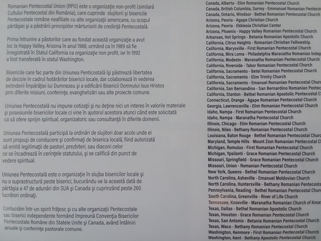 ” Exhibit A – Why does Exhibit A, the Pentecostal Union Calendar of 2017, on page 16, have a picture with the so called leaders ‘Beni Iordanescu & Ioan Retegan’ with baptismal candidates and the name ‘ID, Nampa, Maranatha Pentecostal Church’ when this is clearly a COG Church? Why is a COG Church being claimed by another denomination such as the ‘Pentecostal Union’?