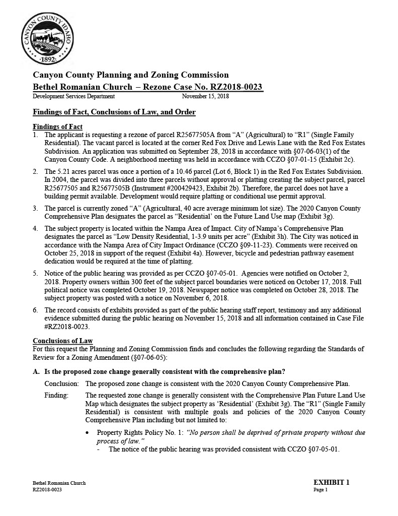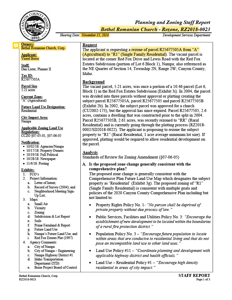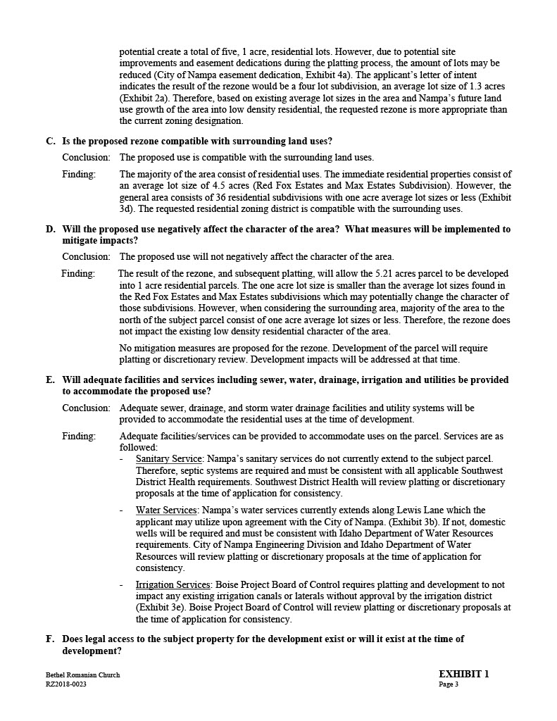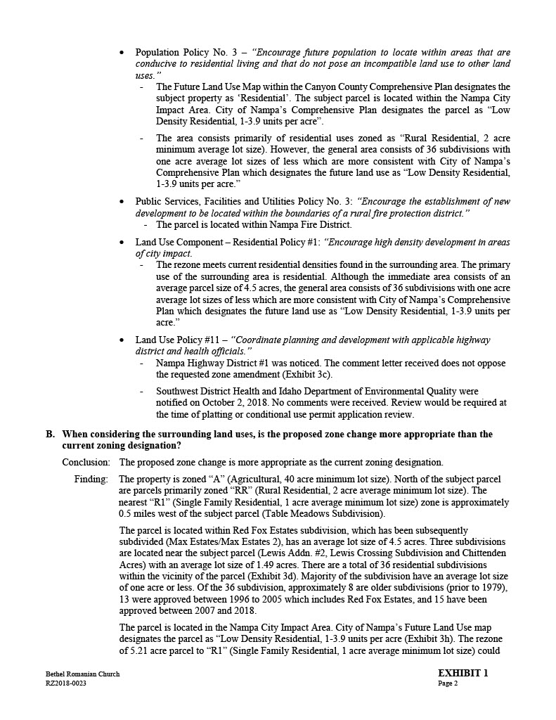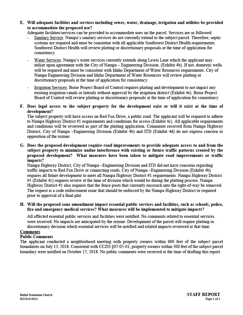 ” Exhibit G = Nov. 15th, 2018 Planning & Zoning Staff Report – Bethel Romanian Church;…. Applicant = Viorel Botos
