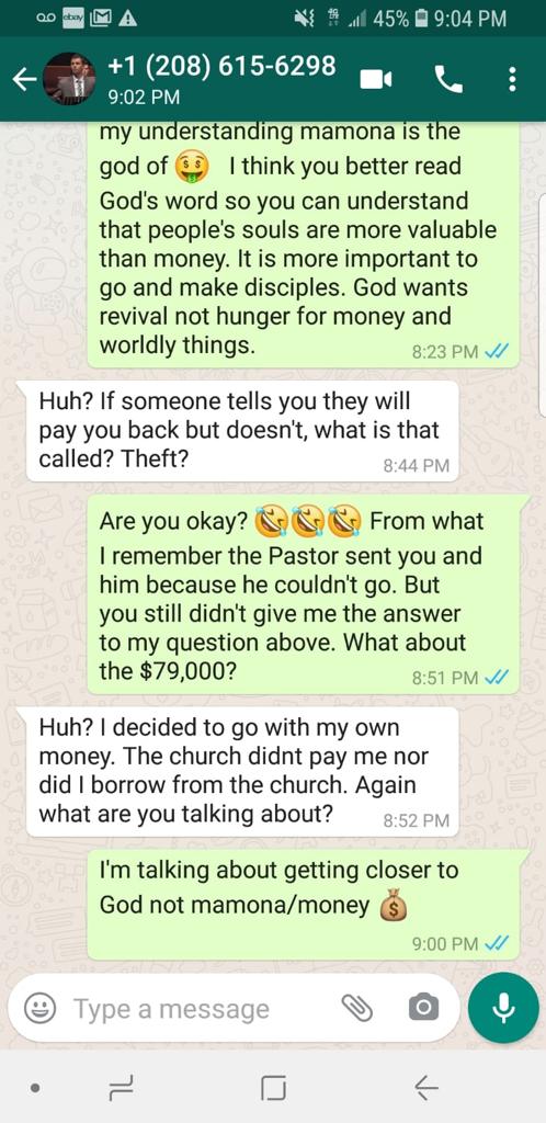 Context: Andy Jack Dimbi began to reply and send messages inciting strife between the youth over what was taking place at the leadership level within the Maranatha Romanian Church of God regarding the fraud being committed by the leadership and church board, led by then pastor, Ioan (Ionuc) Retegan. While what the church leadership was committing was completely evil, and Andy was right to expose what was taking place, the youth were not at fault for their parent’s actions. Andy Dimbi’s actions in targeting (a majority of) minors was uncalled for and completely inappropriate.